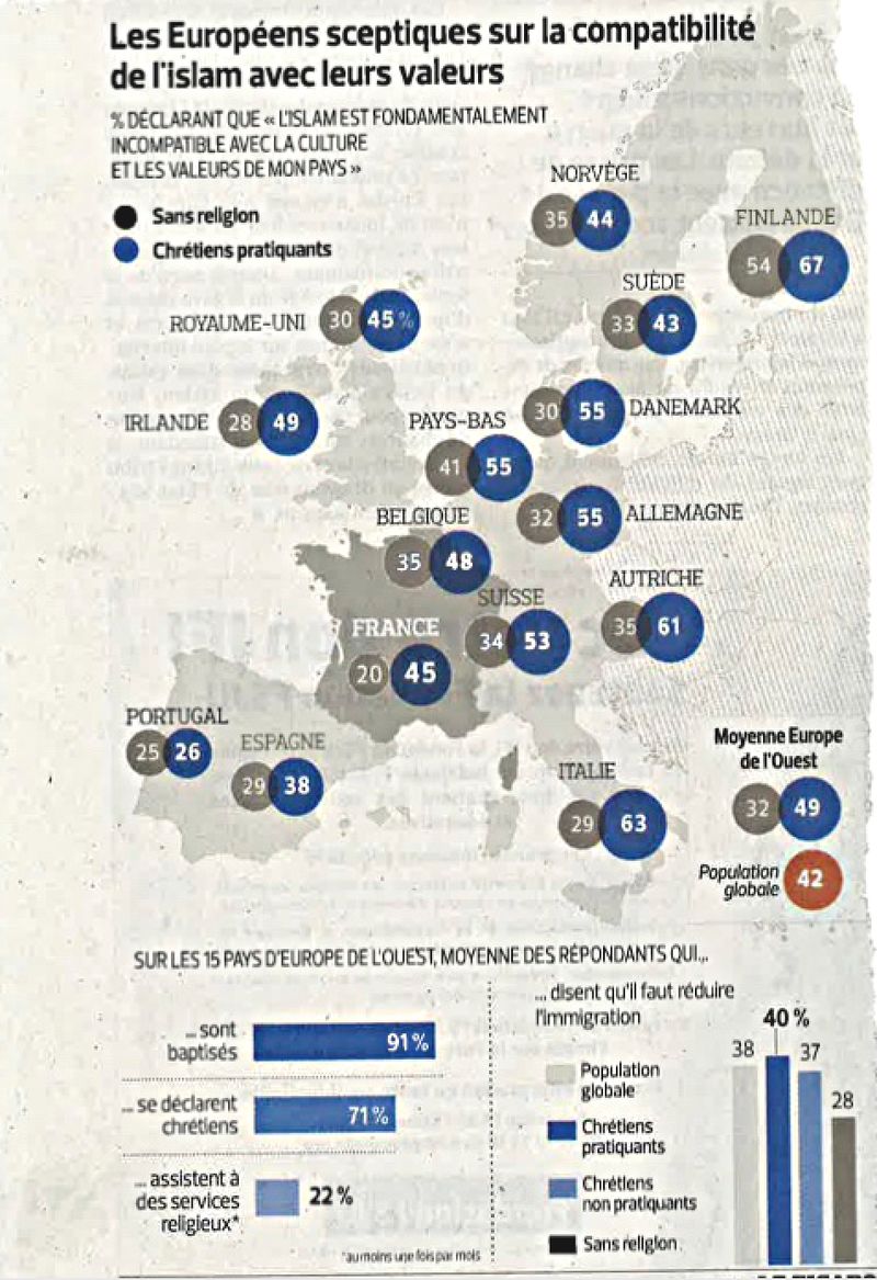 Mais rien n’est sérieusement fait pour l’expulsion des clandestins, tandis que les entrées légales annuelles d’étrangers (412.000 en 2017 !) explosent. Le prix ahurissant à payer pour le coup d’État juridico-politico-médiatique et le salaire de Penelope ? 262.000 titres de séjour, 100.000 demandeurs d’asile, 50.000 « mineurs isolés ». Si l’on ajoute 50.000 entrées supplémentaires correspondant au chiffre net entre les entrées de clandestins et les ridicules expulsions de l’ordre de 10.000, cela correspond à une entrée annuelle inacceptable de 462.000 étrangers, extra-européens à 90 %, avec à la clef un taux de fécondité de 3,4 enfants par femme, soit pratiquement le double de celui des femmes en France.