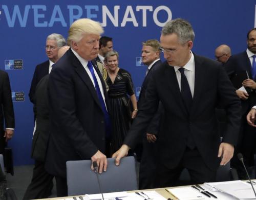 Dans la même lignée, il a d’abord feint de renoncer à dissoudre l’Otan si celle-ci acceptait d’ajouter à sa fonction anti-Russe, une fonction anti-terroriste. Il commence désormais à montrer à l’Otan qu’elle ne dispose pas de privilèges éternels, comme on l’a vu avec le refus d’accorder un visa spécial pour un ancien secrétaire général. Surtout, il commence à rogner sa fonction anti-Russe. Ainsi négocie-t-il avec Moscou l’annulation des manœuvres de l’Alliance en Europe de l’Est. En outre, il pose des actes administratifs attestant le refus des alliés de contribuer à la hauteur de leurs moyens à la défense collective. De la sorte, il se prépare à faire exploser l’Otan lorsqu’il le jugera possible.