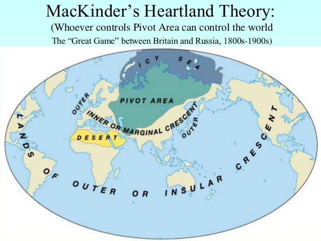 Il y a trois grands centres de pouvoir géographiques dans le monde. L’anglo-américain/transatlantique qui est souvent appelé » l’Occident « . Le Heartland de Mackinder, qui est essentiellement la Russie, le noyau de la masse continentale eurasienne, et la Chine, qui domine historiquement l’Asie. N’importe quelle alliance entre deux de ces centres de pouvoir peut déterminer le sort du monde.