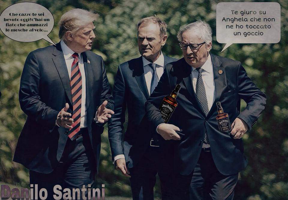 Le président de la Communauté européenne, Jean-Claude Juncker, ne crache pas sur la bouteille et ça le rend familier dans les rencontres entre dirigeants mondialistes. Certains en tirent le portrait d’un alcoolique, d’autre d’un extraterrestre. C’est la 4G de la politique internationale. Le dernier sommet de l’OTAN à Bruxelles a fait jaser la toile des réseaux sociaux : à la tête de l’Union européenne se tient (mal) une « épave humaine », un « ivrogne », qui titube dans les rencontres internationales entre dirigeants du monde. La Commission a dû démentir et condamner le « mauvais goût » de ceux qui persifflaient Juncker, affirmant qu’il souffrait d’une « sciatique ». Les premiers ministres néerlandais et portugais ont été mis à contribution. Mark de Ruute a déclaré que Juncker « se plaignait de mal de dos depuis quelque temps », et Antonio Da Costa a confirmé qu’il s’agissait bien d’une « sciatique ».