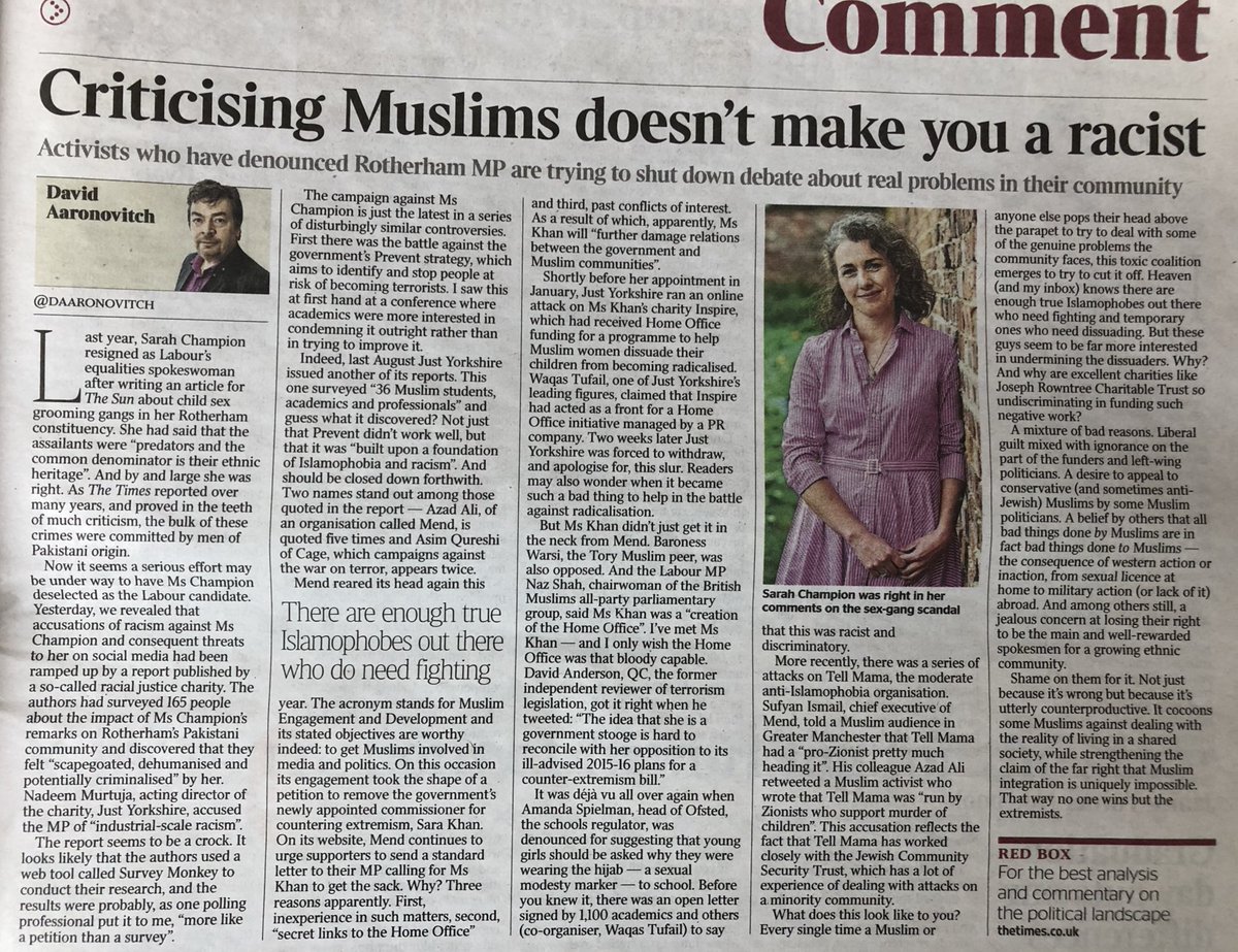 Sajid Javid a même dit publiquement tout son soutien à Sarah Champion, membre du parti travailliste et député de Rotherham, qui vient d’être visée par des groupes musulmans et des franges d’extrême-gauche pour avoir parlé du « problème » des filles blanches abusées sexuellement par des hommes musulmans dans sa circonscription et à travers le pays… Il y a un an, elle s’était fait violemment éconduire du Shadow Cabinet de Jeremy Corbin, parce qu’elle avait clamé cette vérité ethnique dans une tribune au Sun. Il y a un moment, la réalité vous met à genoux et il faut la prendre autrement à moins de ne pas y survivre politiquement… En mai, un groupe de vingt députés avait accusé le gouvernement de « laisser tomber » des milliers de victimes. Sajid Javid s’est donc saisi du « problème ». Mais attention à ne pas tomber trop vite dans le cœur du sujet… ! Il a annoncé qu’il missionnait un certain nombre de fonctionnaires et spécialistes pour tenter d’isoler « un modèle », « une typologie de délinquance sexuelle » – on fait les choses doucement, il ne faudrait pas qu’on puisse les accuser d’amalgame…