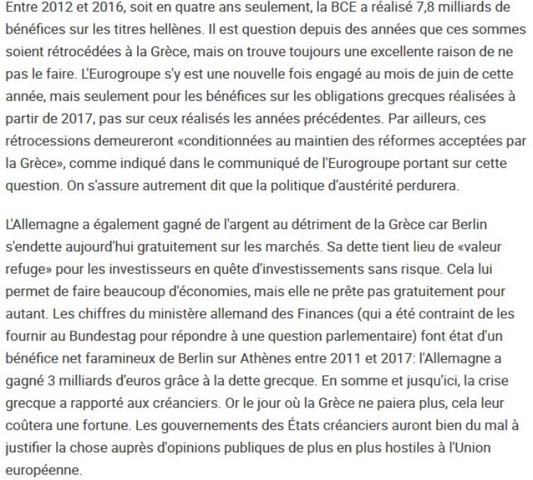 Et que feront les mêmes larrons de nouveau en 2031, les taux d’intérêt ayant monté entre-temps ? Ils repousseront encore de nouveau de dix ans la date de remboursement en affirmant que la Grèce n’est pas en faillite puisqu’elle n’a toujours pas de dette à rembourser ! Les informations sur la Grèce sont un mensonge d’État que l’infosphère, les blogs et les réseaux internet doivent dénoncer avec force.