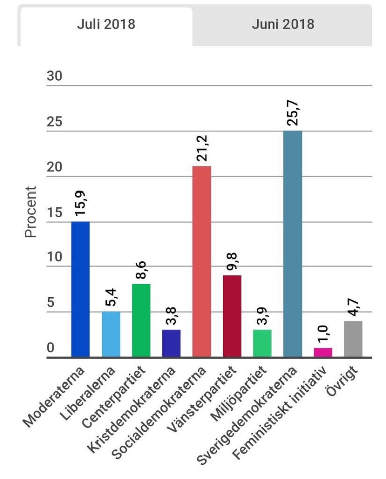 Les Démocrates de Suède, parti classé à l’extrême droite par l’Establishment et les grands médias en raison de son opposition à l’immigration de masse, devraient obtenir un score historique aux élections législatives du 9 septembre prochain. Les instituts de sondage le donnent à 20 % des voix environ, contre 13 % en 2014 et moins de 6 % en 2010, année de son entrée au parlement. En nombre de sièges, la présence au parlement suédois de ce parti ostracisé par tous les autres devrait passer de 49 à plus de 70, sur un total de 349. Le mode de scrutin est en effet proportionnel en Suède, et les sociaux-démocrates auront du mal à continuer de gouverner en coalition avec les Verts et le Parti de gauche si les prévisions des instituts de sondage sont confirmées dans les urnes.