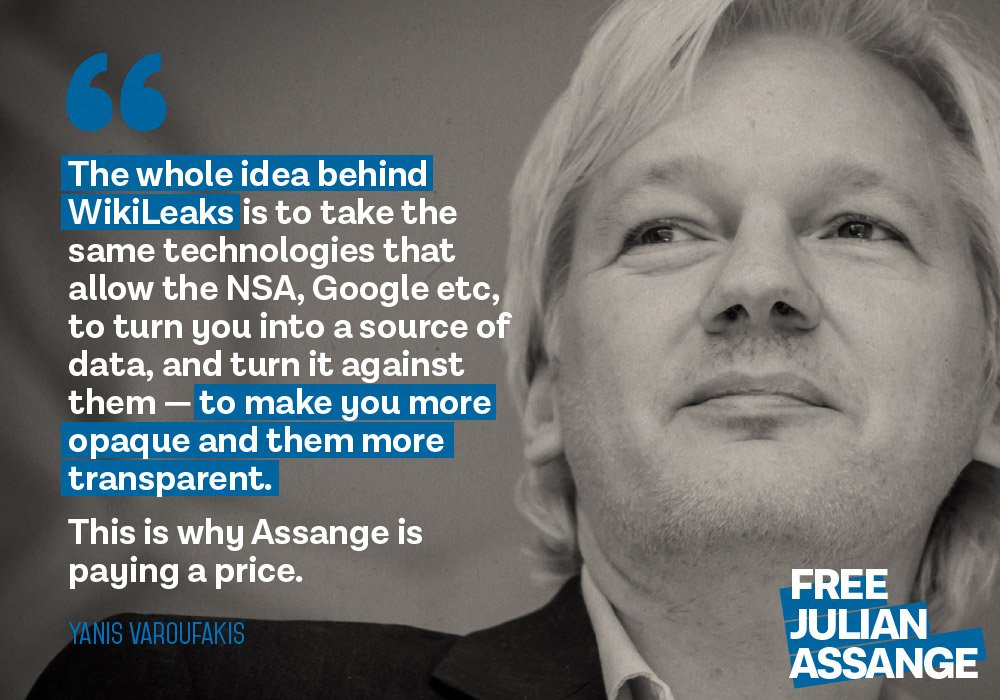 Dans une lettre au Premier ministre australien Malcolm Turnbull, le père de Julian, John Shipton, a écrit : « Je demande au Premier ministre de faire tout ce qui est en son pouvoir pour que Julian rentre chez lui, avant que la situation devienne une tragédie irréversible. » C’est pourquoi ceci est une si urgente affaire de droit à la justice d’un être humain, en même temps qu’une affaire du droit à fonctionner d’un organe de presse et de notre droit à recevoir l’information qu’il donne. Il y a sept ans d’ici, le Premier ministre actuel disait que quand un citoyen australien est menacé de cette manière, le Premier ministre a le devoir de réagir. C’était Turnbull avant qu’il devienne Premier ministre. À présent, le gouvernement australien de Turnbull joue son rôle habituel de 51e état des USA. C’est une véritable honte.