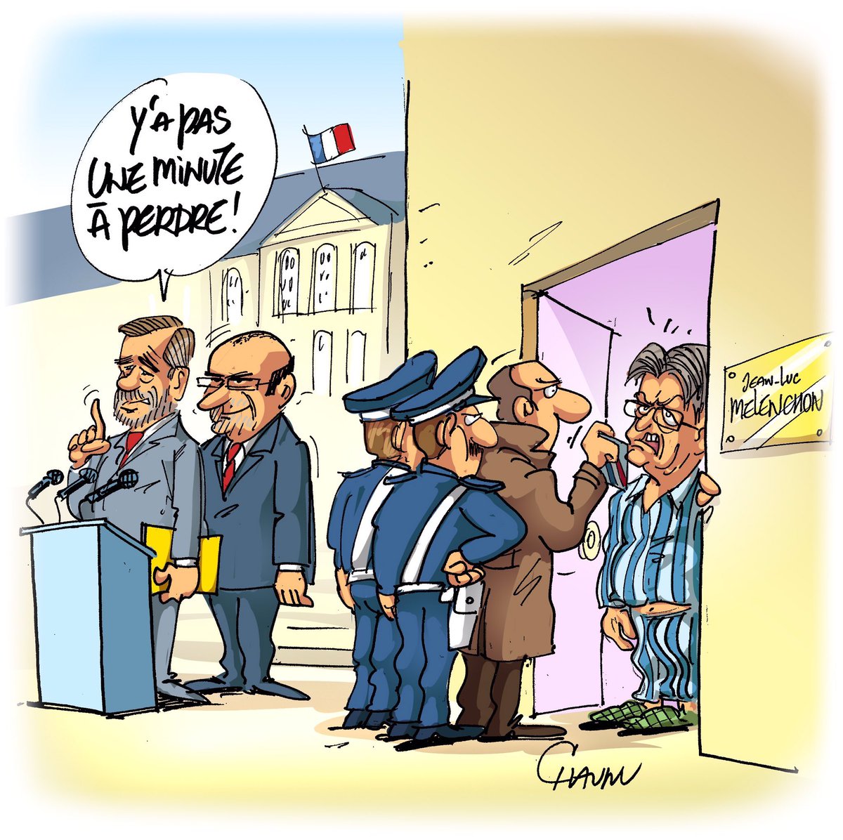 Après les Le Pen et le Rassemblement national, c’est la France insoumise de Mélenchon qui est l’objet de perquisitions brutales. Il peut lui aussi s’indigner à bon compte. Macron prépare une digue contre la vague des mécontents : il promeut les deux extrêmes pour limiter la casse.