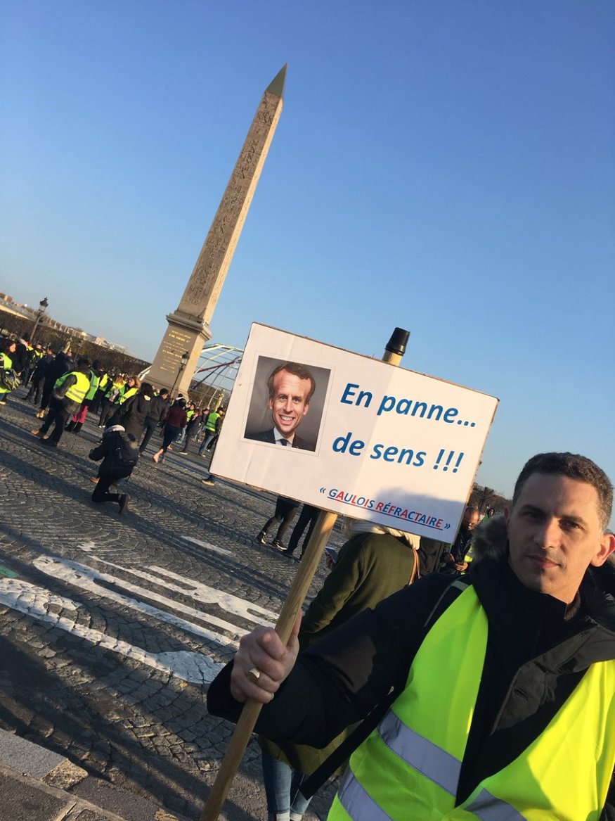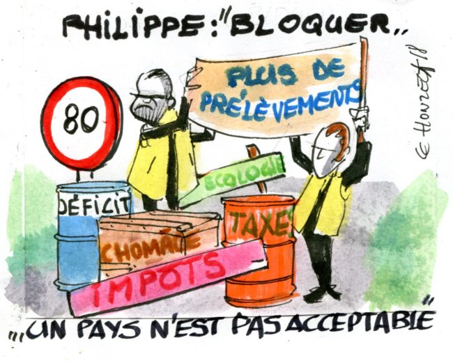 Oui, parce qu’on les a retrouvés devant l’Elysée, ces nanas et ces types plus ou moins porteurs de ce fameux « gilet jaune » qui, pour une fois, présente une utilité: tant qu’à l’avoir dans la bagnole pour éviter la prune susceptible de découler d’une absence d’équipement de bord règlementaire, autant le porter pour aller faire un petit coucou à Présipède. Le jour où ce dernier, en pleine explosion des prix du gazoile, crut bon de faire savoir qu’il poursuivrait sans faillir l’augmentation continue de la fiscalité « verte », la cause se trouva entendue, la goutte fit déborder le réservoir. Ils avaient jusque-là tout supporté, les cocus des prélèvements obligatoires, mais là, tout à coup, ça faisait trop. Ce morveux, accoutumé à les traiter de pleurnichards, de fainéants, d’illettrés, de gens de rien, entre autres marques de considération, leur intimait, avec sa bille de faux-cul, l’ordre de cracher de plus belles au bassinet d’une « transition énergique » dont la ficelle se voit depuis la Lune. Tant que le prix du baril baissait, ils pouvaient y aller sans trop de crainte, nos braves gouvernants successifs, mais avec la remontée brutale des cours la combine a viré au désastre pour les forçats de la bagnole. Obligés, pour cause de prix de l’immobilier, d’aller crécher de plus en plus loin d’un boulot mal payé, leur sensibilité au coût du plein s’exacerbe et le petit « président des riches », incapable de sentir venir le coup, commence à faire les frais de leur grogne un peu désespérée. Elles n’y changeront rien, les mesurettes à la con décidées en catastrophe afin, soi disant, d’aider les pauvres à changer d’automobile; pas plus que les commentaires du style, « ah oui mais ça augmente pour deux bons tiers à cause du prix du brut« … pauvre con, tout ce que tu trouves à faire c’est de nous en coller un tiers supplémentaire en attendant les augmentations futures que tu nous promets déjà! Et maintenant, on nous balance à grands coups de media « plus la peine de manifester, bonnes gens, le pétrole baisse, la pompe va en faire autant! Si ce n’est pas prendre les enfants de la Répupu pour des jambons de Bayonne…