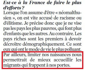 ‘limiter nos naissances nous permettrait de mieux accueillir les migrants qui frappent à nos portes… »