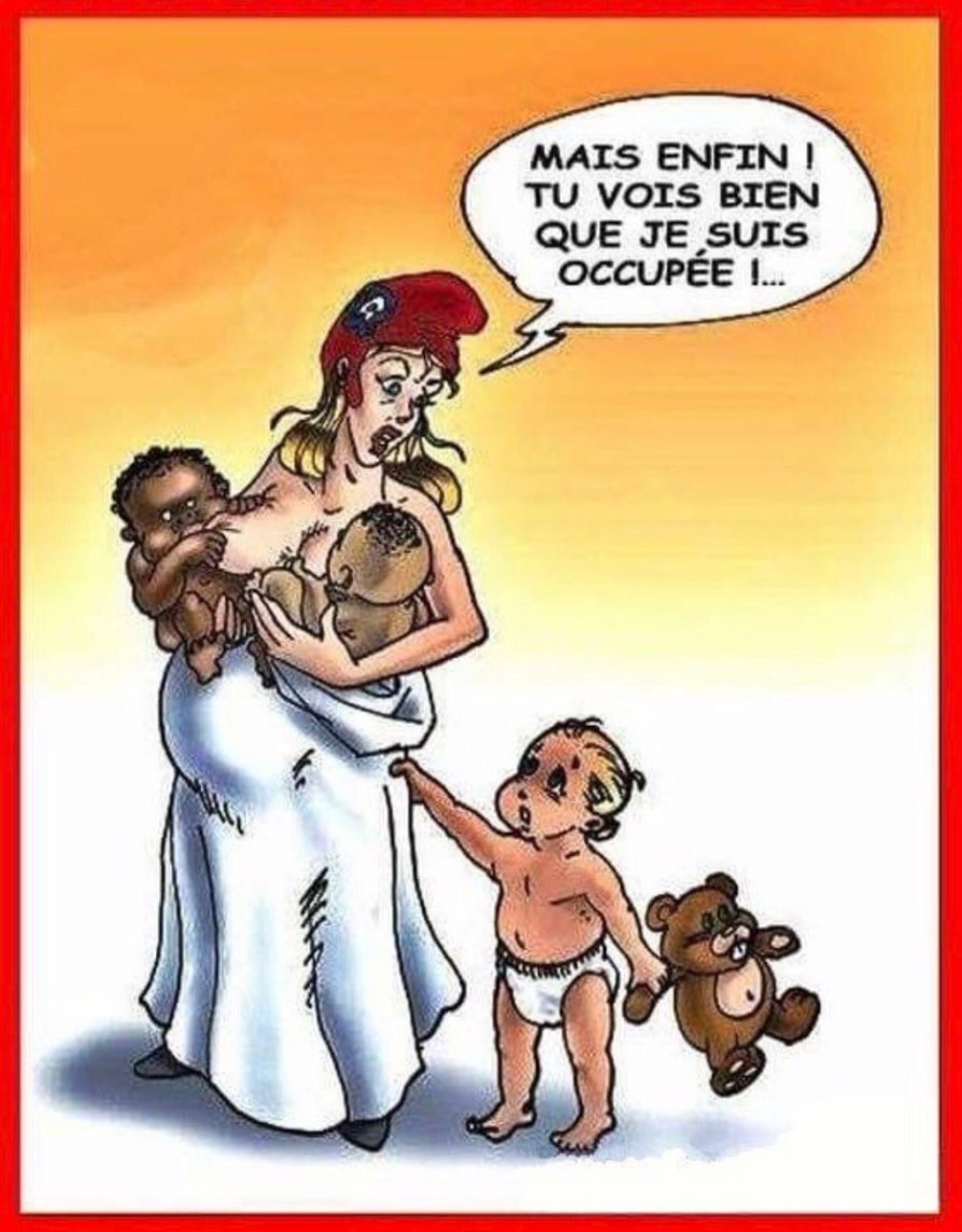 Ce qui nous est demandé à nous Peuple de France c’est de sacrifier au nombre la qualité, c’est d’en finir avec son peuple de souche qui n’a même plus la possibilité d’absorber dans la masse toute une immigration injectée massivement depuis plus de 40 ans. C’est bien un crime qui nous est proposé et s’il devait y avoir incitation pécuniaire à ne pas faire d’enfants c’est bien chez les immigrés que cela devrait s’appliquer. En Ille de France, pour ne parler que de ce que je vois tous les jours défiler sous mes yeux catastrophés, ce sont de jeunes femmes -en particulier noires africaines- qui pondent comme on compte sur ses 10 doigts le bénéfice d’un coefficient familial généreux. Combien de jeunes femmes au foyer, enceintes, un gamin dans la poussette et 2 qui traînent derrière! Le pire c’est que l’on se demande si ce ne sont pas des faux jumeaux tant parfois leurs ages respectifs se confondent… et la mère n’a pas 30 ans!!!
