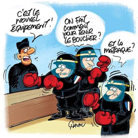 Et, à propos, si une femme dit qu’elle aime bien les hommes costauds, désemparés et excédés qui se battent à poings nus quand tant d’autres ont été éborgnés, estropiés, matraqués, gazés (et avec leurs impôts, encore), sera-t-elle envoyée devant le Procureur ?