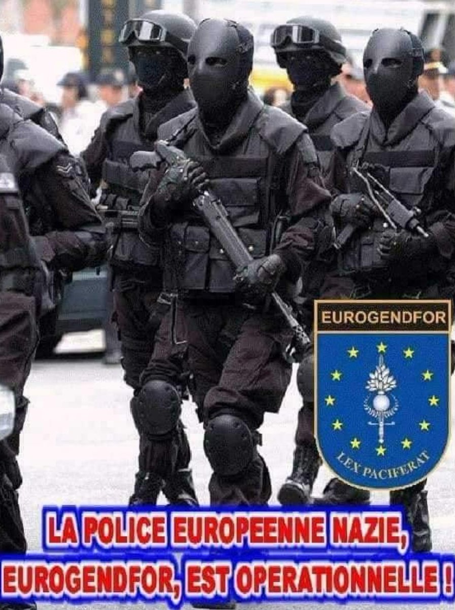 Il s’ensuivra, qu’avec l’appui de l’Eurogendfor, déjà opérationnelle, le maintien de l’ordre et la mainmise allemande sur des secteurs entiers (territoires, ou activités) de la vie des Français, celle-ci va devenir pesante.