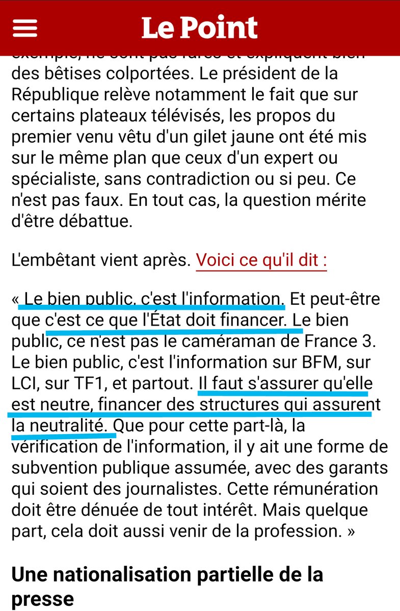 En d’autres termes, selon Macron, c’est l’État, par le biais de subventions à la presse, qui doit assurer l’exactitude et la neutralité des informations fournies.