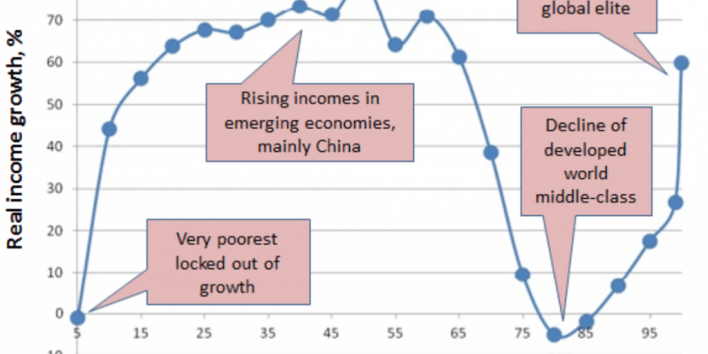 A cet égard, la courbedel’éléphantdel’économiste serbo-américain Branko Milanovicreste un classique. Elle montre clairement que les 0,01 % sont les gagnants absolus de la mondialisation. En 2017, ils ont pu s’accaparer 82 % de toutes les richesses supplémentaires.