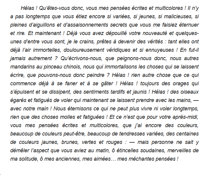 En matière de philosophie Nietzsche est le maître il a su dépasser tous les autres qui n’en sont que des avatars, il a fait œuvre de transversalité et c’est l’unique, l’aboutissement suprême.