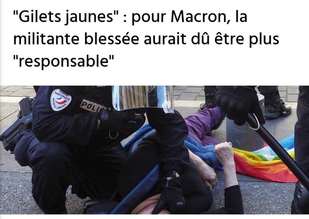 Manifestante Gilet Jaune blessée grièvement à Nice : Macron appelle la victime à une «forme de sagesse».