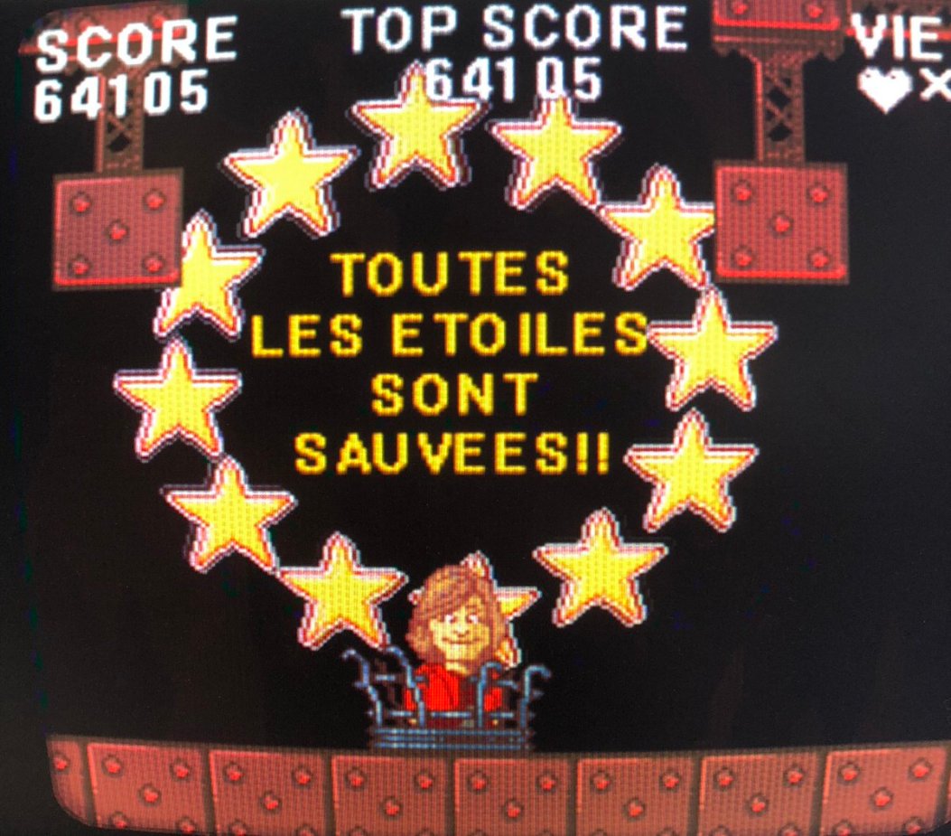 Et sur le jeu, non, vous ne rêvez pas, c’est bien Nathalie Loiseau que vous apercevez. Elle sautille partout, tchip tchip, affronte des méchants (Marine le Pen, Mélenchon et plein d’autres vilains monstres) qui ont volé les étoiles européennes, et elle, appelons-la Super Mariole, doit récupérer le plus d’étoiles possibles. Toi comprendre, petit nenfant ?
