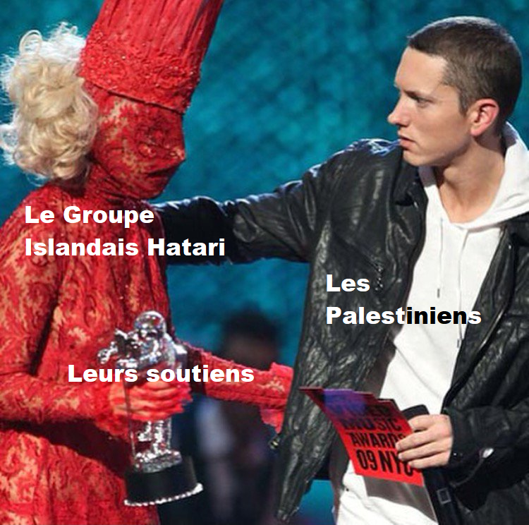 En ce sens, le faux scandale des créatures islandaises en plastique dont on a pensé à plusieurs reprises qu’elles allaient se vautrer sur la scène avec leurs plateforme boots et leurs corps lardés d’un cuir semblable à quelque ficelle à gigot, consistant à déployer un drapeau palestinien à tel Aviv, achtung grosse subversion, témoigne du degré zéro de la rebellitude qui a gagné la culture de masse européenne. On leur conseillerait bien d’aller se trimballer boudinés en gigots BDSM à Gaza, mais on a la flemme, à quoi bon…