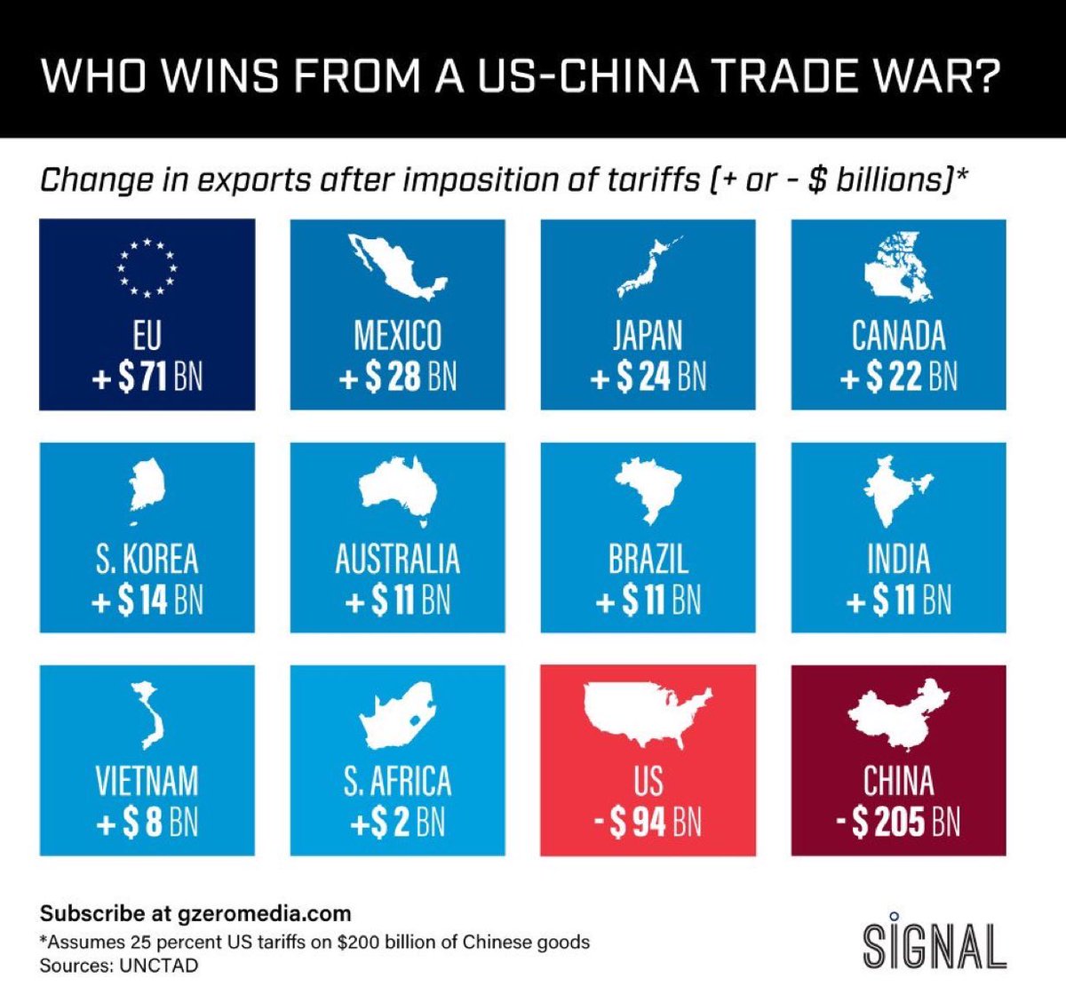 De son côté, la Chine, en réponse à l’offensive de Trump, va créer aussi une liste noire d’entreprises étrangères non fiables. Par ailleurs, 5.410 produits américains déjà pénalisés, pour une valeur de 60 milliards de dollars, seront taxés, le samedi 1er juin, à hauteur de 10, 20 ou 25 %. Les trois quarts des entreprises américaines en Chine sont déjà pénalisées par les tracasseries chinoises (inspections diverses, arrêt des achats, difficultés des dédouanements, etc.). Plus de 40 % des entreprises américaines envisagent de délocaliser leurs sites en Chine dans les États asiatiques (37 %), au Mexique (11 %), Europe (3,8 %). Moins de 6 % envisagent de transférer leurs usines chinoises aux États-Unis.