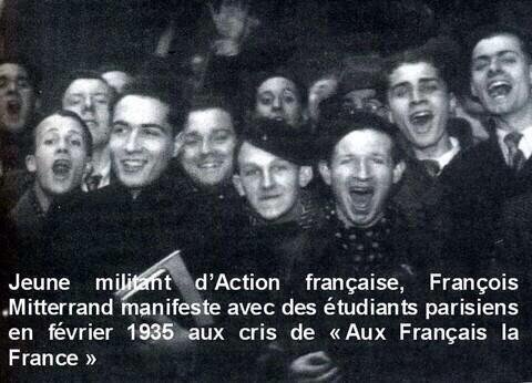 Il n’est pas étonnant que cet homme qui, avant guerre, fut proche de la Cagoule – un mouvement d’extrême-droite – , qu’on vit le 1er février 1935 manifester sur une photo en compagnie de gens qui portent une banderole « Contre l’invasion des métèques » – reproduite dans le cahier photos de Pierre Péan, Une jeunesse française: François Mitterrand. 1934-1947 (Fayard); qui reçut la francisque des mains même du Maréchal Pétain mi-1943 – photo dans le même cahier…- , qui fut maréchaliste, vichyste, avant de devenir giraudiste, autrement dit affilié à ce général qui était l’homme de paille des américains; puis qui fut résistant de la vingt-cinquième heures après que la victoire soviétique de Stalingrad eut montré que la guerre était finie – il n’est donc pas étonnant, dis-je, que cet homme ait jubilé d’incarner la seule ligne à laquelle il fut fidèle dans sa vie politique, à part l’amour de lui même: la haine du général de Gaulle.