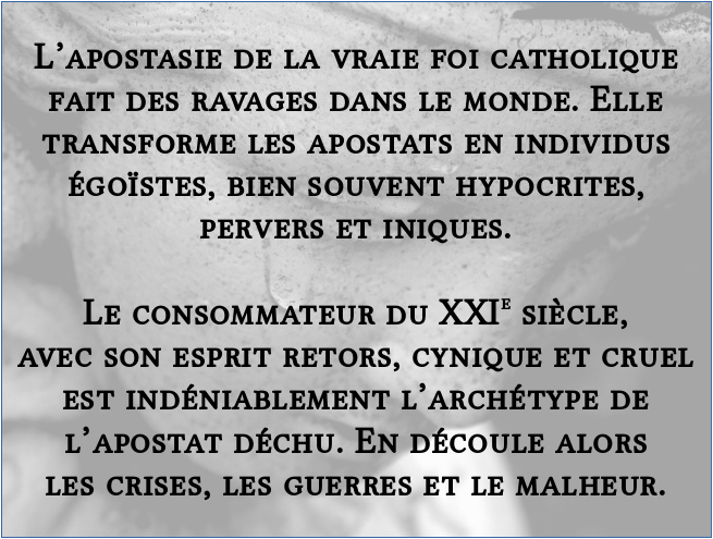 Nous avons donc 43% des catholiques qui votent pour une liste ayant comme substrat idéologique, pêle-mêle : la dissolution des nations dans le gloubiboulga globaliste, la dilution des protections sociales au profit de la grande finance, la transformation des concupiscences de tous ordres de chaque individu en droits inaliénables, une vision autiste des relations internationales où prime l’interprétation progressiste de l’histoire humaine, quitte à pratiquer sans barguigner des opérations meurtrières de “regime change”, l’avènement d’une humanité nouvelle en totale rupture avec la loi naturelle, et donc le corollaire de tout ceci, la négation (pour les athées), et le reniement (pour les chrétiens), du règne de Notre Seigneur Jésus Christ sur les âmes et les sociétés ! »