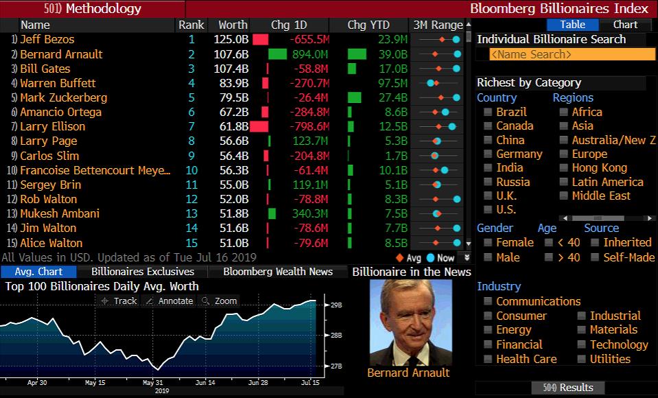 « En France, le premier semestre de 2019 a été marqué par des troubles civils persistants. Des foules de manifestants sont descendues dans les rues pour réclamer des salaires et des retraites plus élevés alors que l’inégalité croissante entre riches et pauvres se creuse », écrit Alexander Sazonov, analyste du Bloomberg Billionaires Index.
