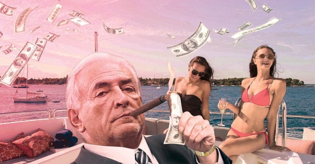 Leyne sent le filon: en mai 2013, il propose à DSK de l’accompagner au Soudan du Sud pour l’inauguration d’une banque que Leyne finance. Là-bas, dans cette jeune république meurtrie par des années de guerre civile, DSK y est accueilli en chef d’état. Le spectacle est sans aucun doute pathétique : l’ex ministre des finances de la France, ancien patron du FMI, réduit à faire le spectacle sous un parasol face à une obscure banque qui se résume être un bête immeuble en parpaings. Il ne fallait pas plus cependant pour flatter l’orgueil de DSK. Leyne se goberge du “succès” de cette expédition au micro de France Inter