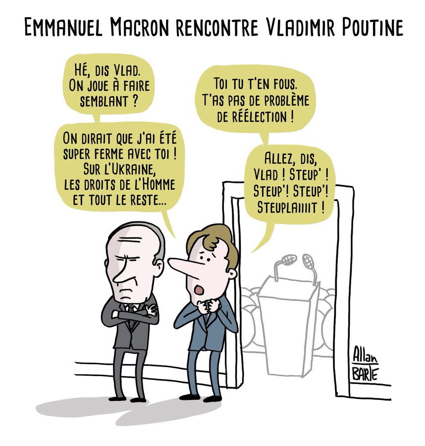 La comédie du pouvoir continue. Macron fait semblant de parler des affaires du monde avec Poutine, pour mieux faire oublier ses échecs en politique intérieure. Quant à Poutine, il se prête au jeu pour montrer aux Russes qu’il n’est pas aussi isolé que le disent certains.