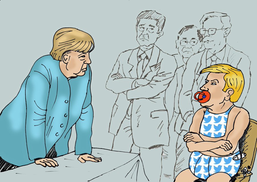 Autoritaire et humanitaire, Merkel incarne le prototype féministe ; voyez L’Express qui évoqua dans une manchette débile ces femmes qui sauvent le monde. En réalité si nous avions eu Hillary Clinton au pouvoir, nous aurions déjà la guerre mondiale. Merkel incarne l’esprit de la nursery décrit en 1921 par Chesterton lors de son voyage en Amérique. Pour Chesterton la féministe considère le citoyen comme un enfant, plus comme un citoyen.