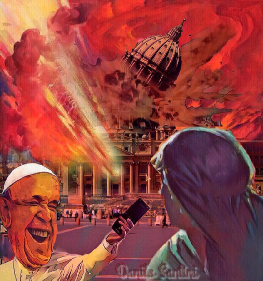 « L’élection du Pape François représente le franchissement définitif du Rubicon pour l’Église catholique. C’est peut-être temporaire, peut-être pas, mais Amoris Laetitia et Magnum Principium sont deux documents qui suggèrent que nous sommes arrivés à un moment de plein dévoilement, un moment dans l’histoire de l’Église où l’Église glisse dans l’insignifiance, où la submersion par la culture délabrée de l’Occident, jadis catholique, est pratiquement garantie. Il n’y a pas de trompette pour annoncer la reddition de l’Église catholique aux faux apôtres, pour annoncer la reddition de l’Église aux forces maléfiques à l’œuvre dans le monde. Il n’y aura probablement pas d’annonce à cet effet. Tout ce que nous recevrons en tant que catholiques, ce sont des mini-annonces. Félicitations pour un avorteur. Ici, un évêque réinventant la messe. Là, l’invitation de Planned Parenthood au Vatican. Tels sont, et je suis sûr que beaucoup de lecteurs seront d’accord, les annonces d’une contre-église établie dans le sein de l’épouse du Christ. »