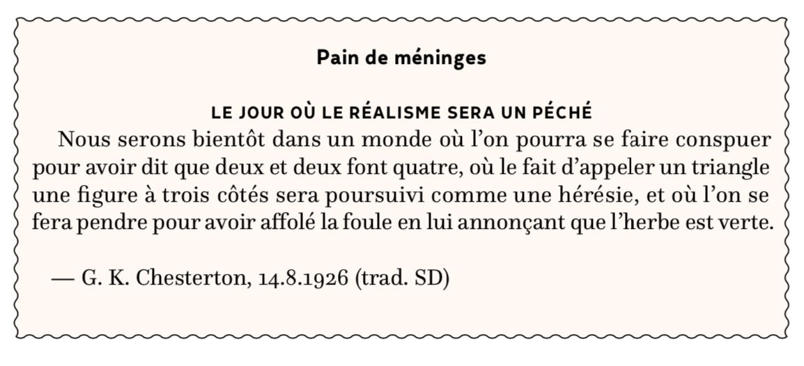 Nous vivons une époque formidable qui relève des bonnes dystopies des années 70. Je recommanderais ironiquement « Woody et les robots (Sleeper) »… En voyage dans les années 2200 dans une société néototalitaire, notre bon Woody trouve qu’elle ressemble à sa bonne vieille Californie sociétale. On n’y a aucune liberté, on n’y fait plus l’amour ni l’humour… Quant à ce qu’on y mange…