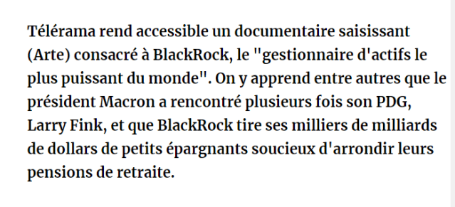 « Ce que Macron fait c’est exactement la mobilisation qu’a faite Hitler en 33 quand il a commencé à réorienter le revenu national et à réarmer. Il a fait alliance avec le très grand patronat, maté les révolutionnaires et les syndicats, il a permis au grand patronat de hausser le taux d’exploitation et d’engranger des super profits colossaux. En échange le grand patronat a investi et l’a porté aux honneurs suprêmes. » Bruno Bertez