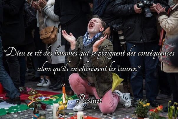 L’une des phrases les plus profondes que l’on entend souvent est celle ci: « ils déplorent les effets dont ils chérissent les causes »; cette jolie affirmation serait de Bossuet. Elle montre bien l’opération scélérate des élites et de leurs conseils dans son fondement: la dissociation des causes et des effets.
