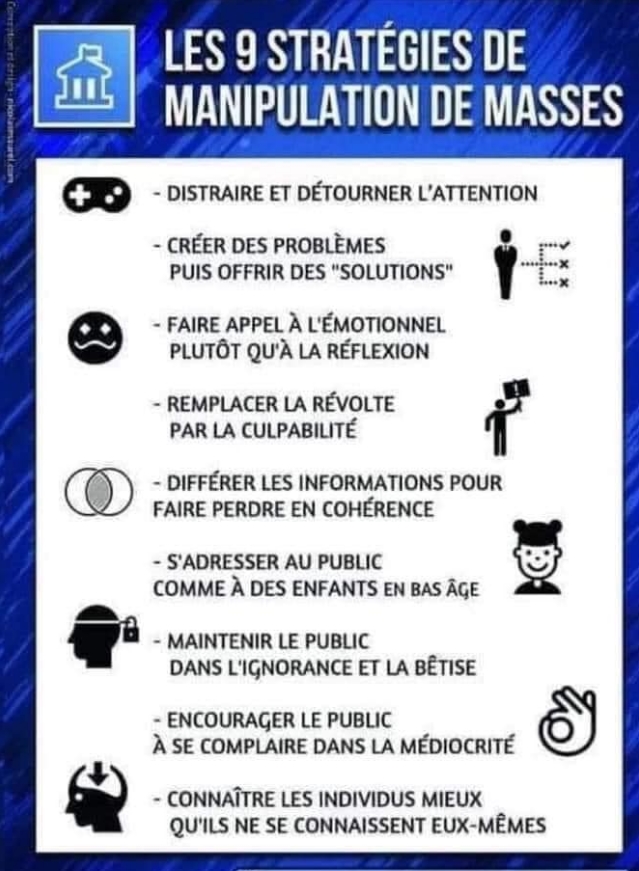 Postscriptum: qu’on pense, au minimum, que parmi les très graves conséquences qu’entraîne avec elle cette diabolique stratégie de manipulation avancée des masses, il y a celle de provoquer une fracture sociale pratiquement irrécupérable. Son corollaire le plus nuisible, étant, cependant, la dégradation de la société moyennant l’exaltation des aberrations en tout genre, qui finissent, comme nous l’avons vu, par être assumées et même être considérées comme naturelles.