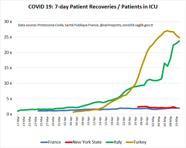 Voici un autre graphique montrant l’amélioration spectaculaire des taux de récupération une fois que l’Italie a commencé à adopter à l’échelle nationale la #Hydroxychloroquine pour le traitement précoce de Covid-19 en avril. La Turquie a adopté l’utilisation systématique du HCQ pour le traitement précoce # Covid19 vers la mi-avril.