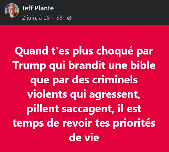 « Bande d’hypocrites ! Allez au sud-est de Washington, au nord-est de Washington. Dites-leur que la vie des Noirs compte ! Si ça compte, ça devrait compter partout. Vous êtes des hypocrites, des chercheurs d’attention. La vie des Noirs devrait avoir de l’importance partout. Il ne faut pas être un flic blanc pour tuer un Noir [pour que sa vie] ait de l’importance », poursuit Yumga.