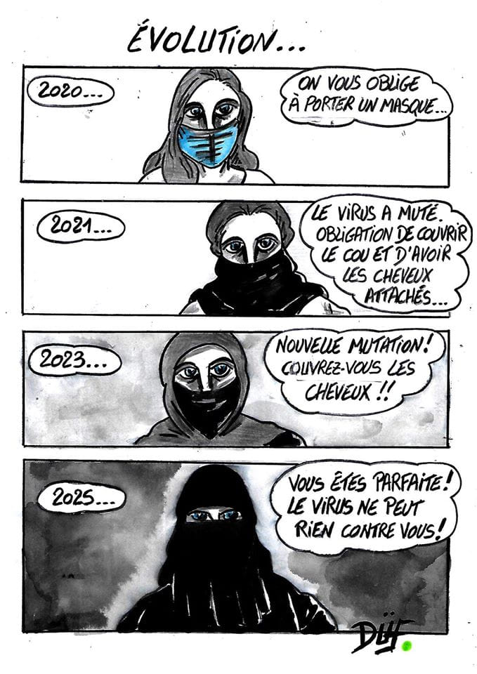 En contradiction absolue avec les études scientifiques sérieuses concernant les modalités de la transmission du coronavirus (cf. les décisions des gouvernements suédois, danois, hollandais… ayant pris acte de l’inefficacité du « port du masque »), l’obligation renforcée de « la muselière pour tous » en France montre à l’évidence que dans la plupart des pays occidentés, le capitalisme n’a désormais plus besoin de s’encombrer des apparats de la démocratie, notre prétendue république (res publica = chose publique) a dégueulé sans spasmes dans un régime totalitaire, inféodé aux intérêts privés, autoritaire et policier, en stricte conformité avec le « capitalisme aux valeurs asiatiques » sévissant déjà à l’Est.