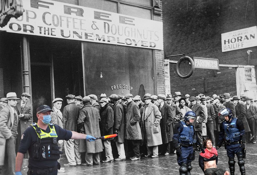 Une vidéo remarquable en provenance d’Australie montre des gens scandant en masse “liberté !” alors qu’un marché alimentaire est fermé de force par les flics anti-émeute du Corona.