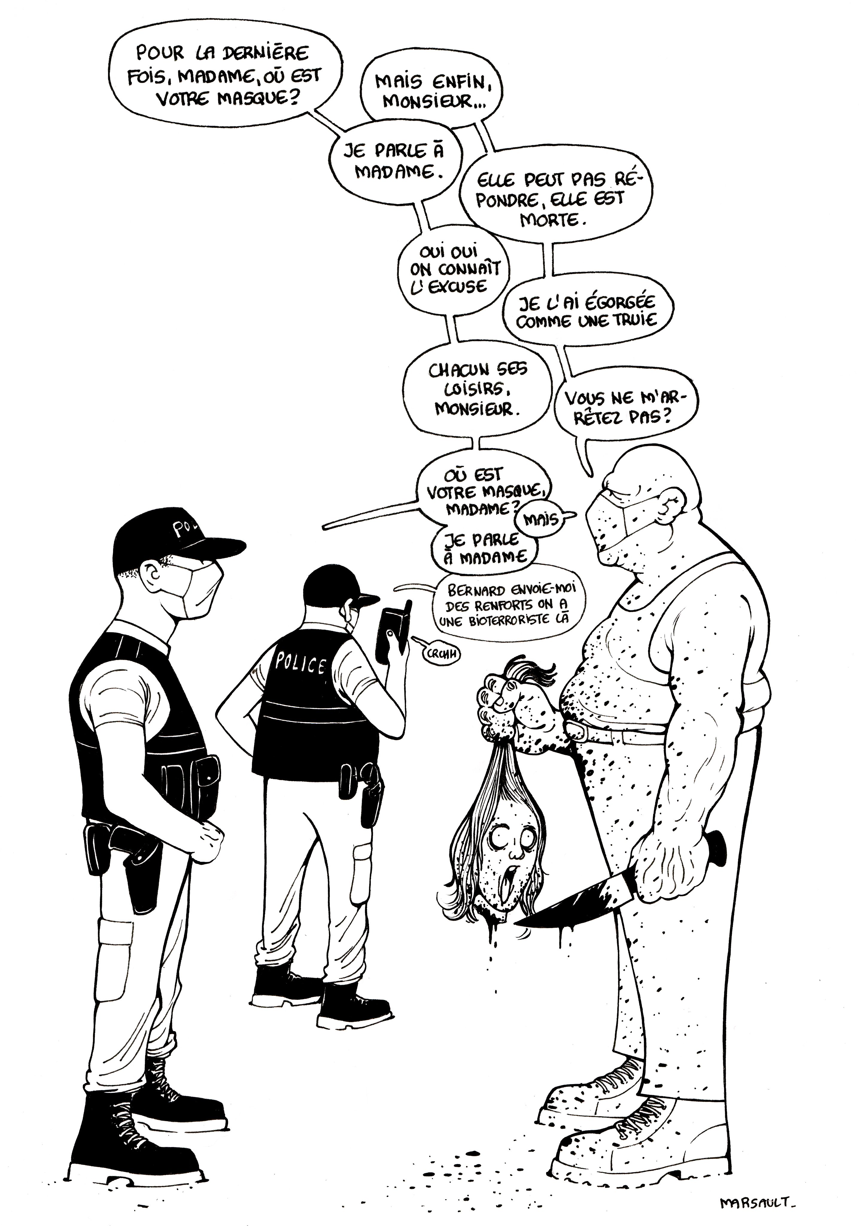 Pour avoir été au cœur de cette guerre éclair anti-covid, il me faut reconnaître la performance de nos forces de gendarmerie nationale qui ont réussit en moins de deux jours à boucler l’ensemble du périmètre national français. On aurait aimé voir autant de zèle de nos forces de Police à vider de ses « indésirables »  des territoires que l’on nous disait « perdus » pour la République. Perdus ? On notera qu’apparemment il n’en est rien, ce qui est, somme toute plutôt rassurant, puisque en l’absence de réaction de notre « armée victorieuse », les fameux territoires ne sont surement pas perdus pour tout le monde, et qu’à l’image des aéroports, ces zones franches à la détaxe facile ne doivent leur existence fortuite  qu’à un retard législatif, en vue d’une future légalisation du cannabis et autres pilules festives et thérapeutiques ! Ouf la République est saine et sauve, ou plus exactement (mal)saine et le PIB est sauf !