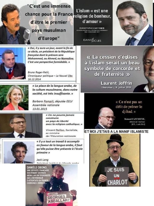 Car la fachosphère de gauche est intouchable: tous ceux qui, depuis des années, par leur impéritie coupable, ont rendu possible le djihad mené sur la terre de France y allaient de leurs larmes de crocodile: le PS et son Hollande, le PCF et son premier secrétaire dont personne ne connait le nom, la FI, on l’a vu, les Verts, LR, LREM (autrement dit: un ramassis de LR, de PS, de MODEM…), l’UDI, il n’en manquait pas un. Ils sont au pouvoir depuis des décennies, mais ils ne sont responsables de rien et donc coupables d’encore moins…