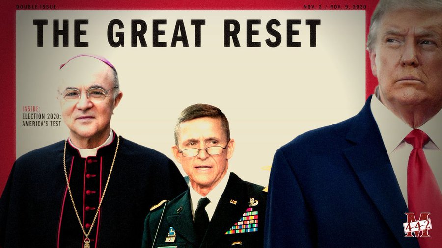 La lettre, rédigée par l’archevêque Carlo Maria Vigano, ancien ambassadeur du Vatican aux États-Unis, s’attaque à une ombreuse “élite mondiale”, qui complote un “Great Reset” (Grande Remise à Zéro) destiné à saper “Dieu et l’humanité”.