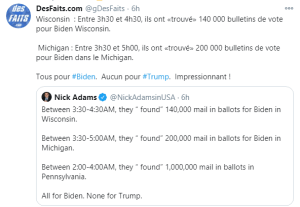 Des arrivages aussi soudains que massifs de voix, exclusivement en faveur de Biden :