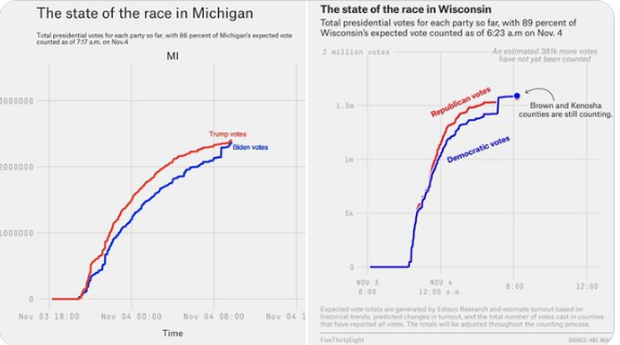 Des arrivages aussi soudains que massifs de voix, exclusivement en faveur de Biden :