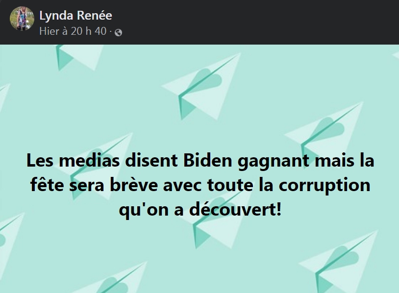 “J’ai personnellement vu deux personnes remettre plusieurs enveloppes de vote non ouvertes à deux autres personnes qui ont ensuite ouvert et rempli les bulletins de vote contre le côté de la camionnette de Biden/Harris. Les deux mêmes personnes qui ont marqué les bulletins ont ensuite mis les bulletins marqués dans des enveloppes roses et blanches officielles. Ces personnes n’étaient pas des employés du bureau de vote”.