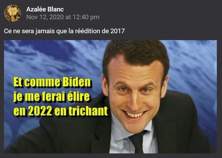 Faut il y voir là le paradoxe de toute démocratie qui fait que celui qui gouverne ne le fait jamais que par défaut : défaut de ceux qui n’ont pas voté, défaut de ceux qui n’ont pas voté pour, défaut de ceux qui regrette d’avoir voté contre. Ainsi rassurez-vous après Trump, « Pas mon Président » risque de se retourner très vite contre « Biden le voleur d’élection ».