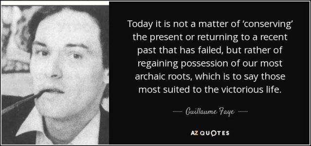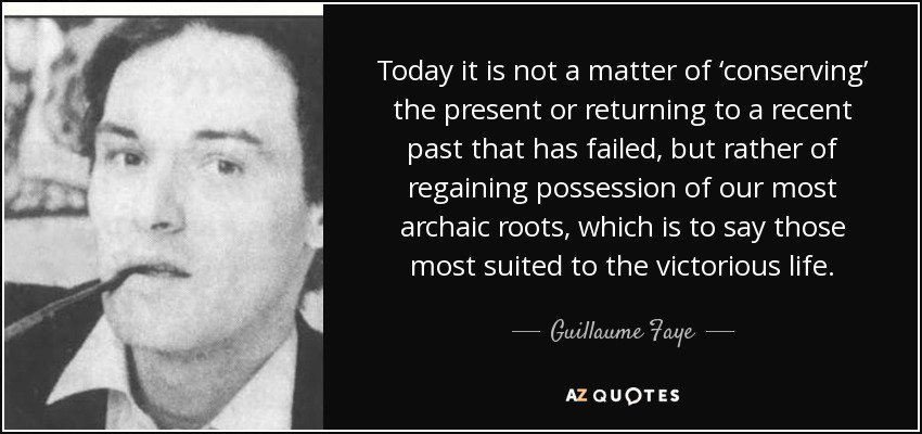 Faye croit en un ordre immuable issu de la nature humaine et dont les « valeurs archaïques » sont la meilleure traduction. Il écrit :