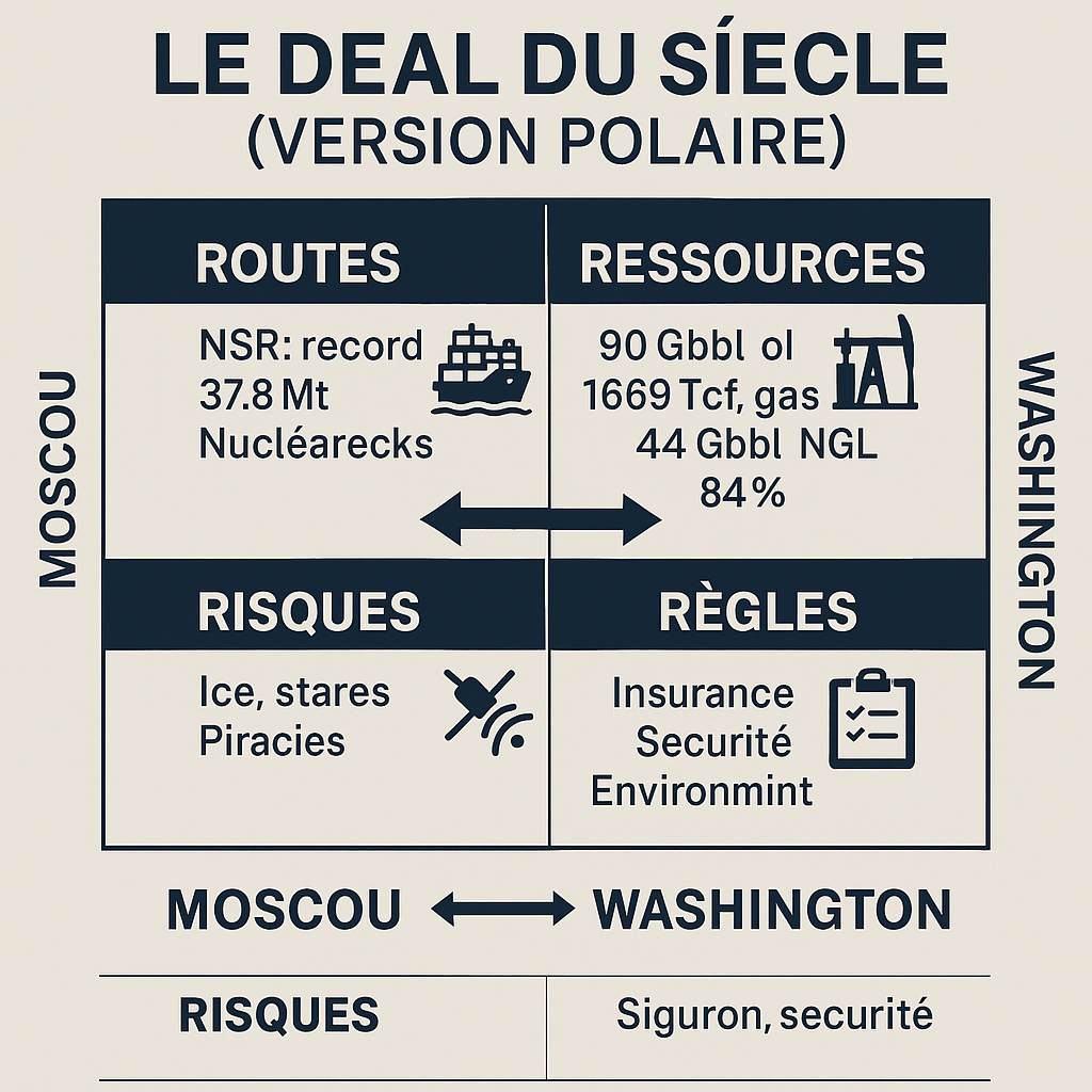 Traduction “Don Trump” : brise-glaces contre satellites, paysage réglementaire contre tonnage garanti, et chacun repart avec une photo de victoire.