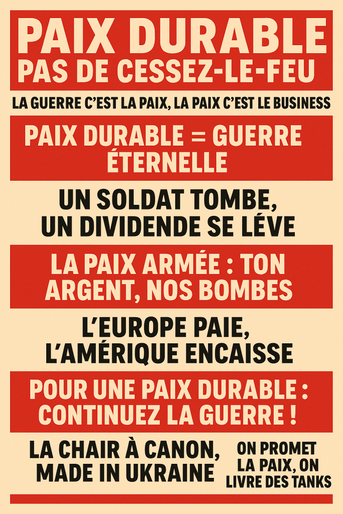 Moralité décapante : si « la guerre, c’est la paix », alors demandons au moins que la paix ait une date, un plan, et un prix — autrement, ce n’est qu’une guerre par abonnement.