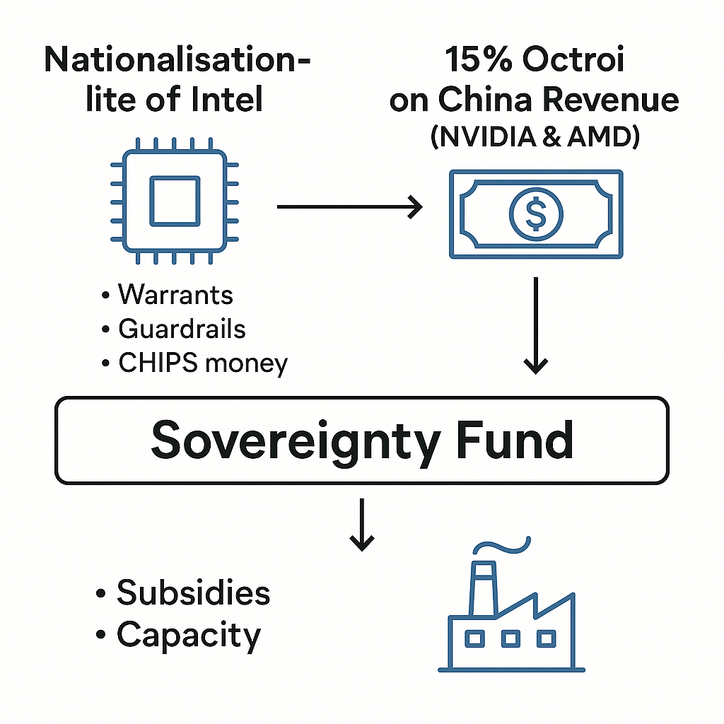 C’est mieux emballé : nationalisation-lite d’Intel + socialisme de marché par le cash-flow des fabless.