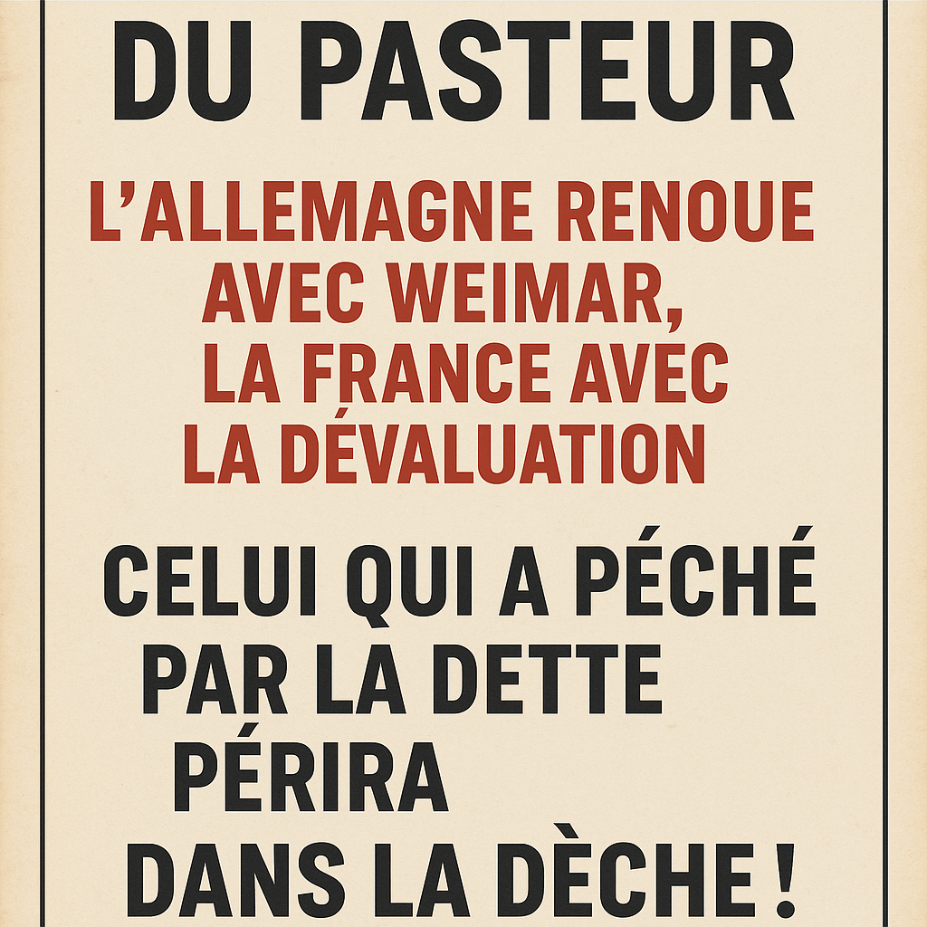 Frères et sœurs d’outre-Rhin, honorez la mémoire de Weimar sans en faire un fétiche. La stabilité des prix est un bien, mais elle n’est pas un dieu. Ce qui sauvera l’Allemagne ne sera pas la pénitence, mais l’investissement : énergie pilotable, digital, défense. Convertissez la peur en capex.