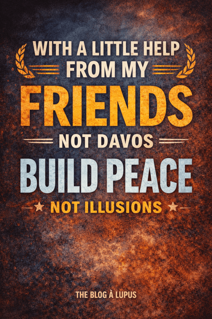 pas d’universalisme abstrait, pas de grande famille humaine fictive, mais un cercle de proches, d’alliés choisis, de partenaires utiles. La paix par les amis — les vrais, pas les invités de Davos. - Sgt. Pepper comme anti-Davos