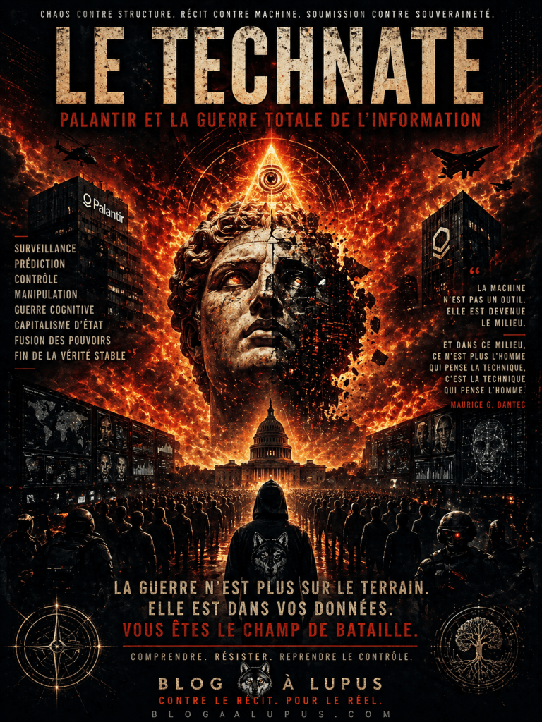 Ce que certains appellent “techno-fascisme” n’est peut-ĂȘtre que le nom hystĂ©rique donnĂ© Ă  une rĂ©alitĂ© dĂ©jĂ  installĂ©e : le Technate, c’est-Ă -dire l’État-plateforme, l’État-capteur, l’État-coordinateur, l’État qui voit, prĂ©dit, classe, distribue et contraint.